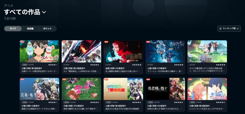 「呪術廻戦」「葬送のフリーレン 第2期」「ダンダダン」「怪獣8号」「チ。―地球の運動について―」など、最新クールから名作まで網羅。アニメファンには特におすすめのラインナップである。